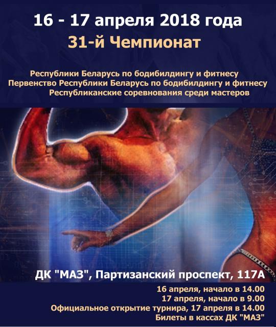 ПОЛОЖЕНИЕ О 31 – М ЧЕМПИОНАТЕ, ПЕРВЕНСТВЕ РЕСПУБЛИКИ БЕЛАРУСЬ ПО БОДИБИЛДИНГУ И ФИТНЕСУ 2018 И РЕСПУБЛИКАНСКИХ СОРЕВНОВАНИЯХ СРЕДИ МАСТЕРОВ.