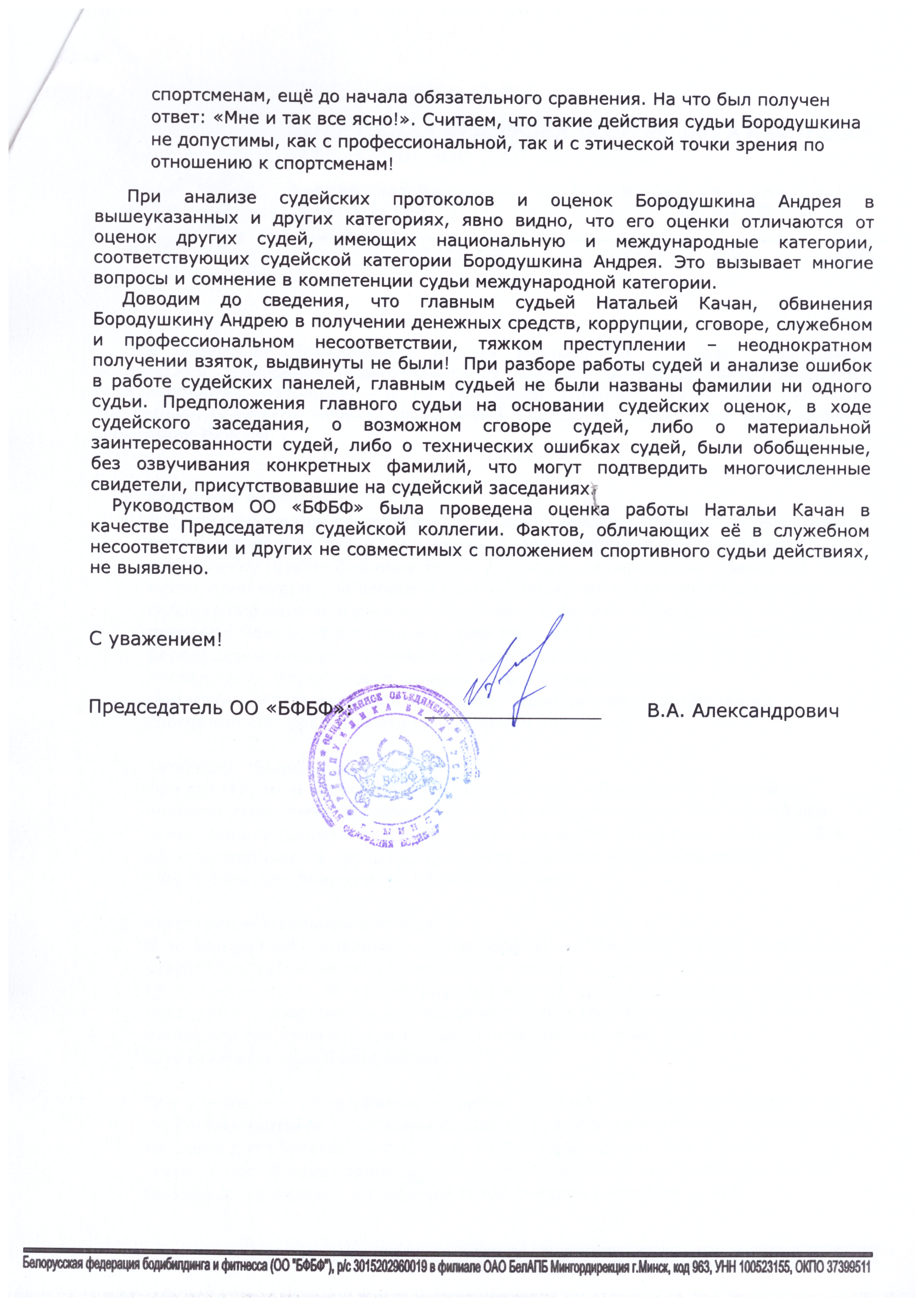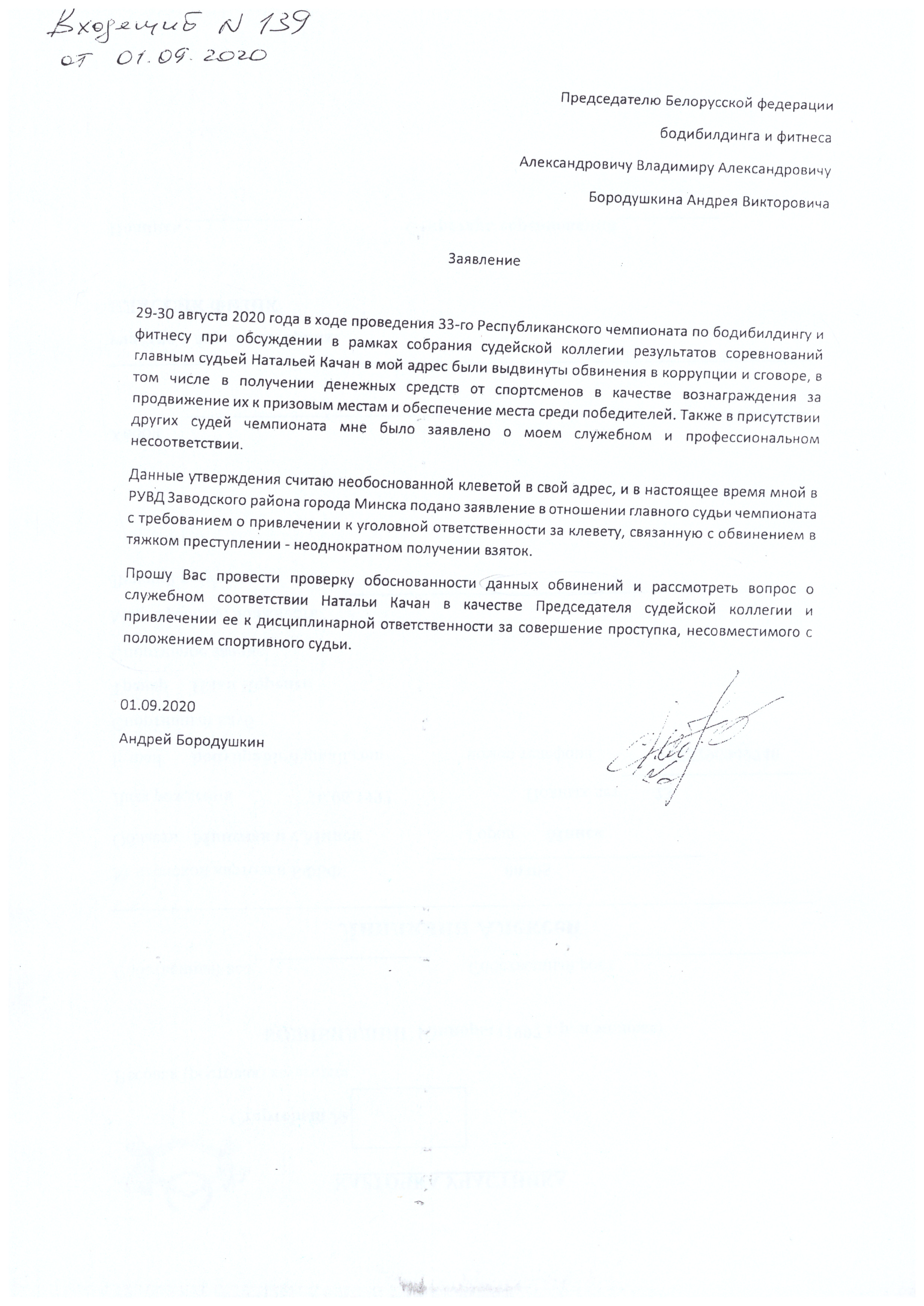 Заявление Бородушкина А.В.